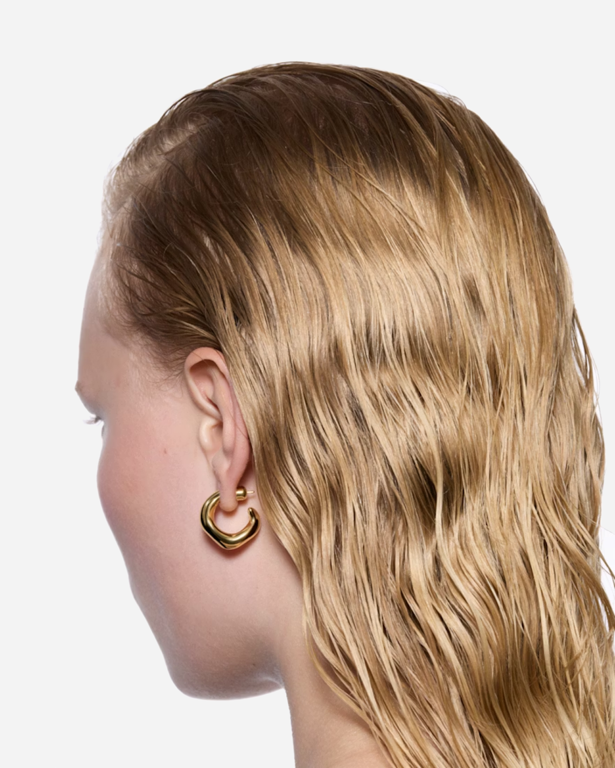 Hoopen er lavet i genanvendt sterlingsølv og forgyldt med 18K guld, så du får en varm, raffineret glans. Smykket er nikkelfrit og hypoallergent, hvilket gør det behageligt at have på hele dagen.