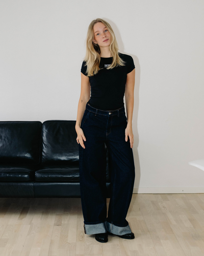 Snittet er ligetil og feminint uden at blive stramt, så den fungerer både alene og som base i lag. Brug den til afslappede hverdagslooks med jeans og sneakers, eller løft den under en blazer, til en lædernederdel eller over en langærmet for et mere grafisk lag-på-lag. Et tidløst samarbejds-piece til kvinder, der vil have enkelhed med attitude.