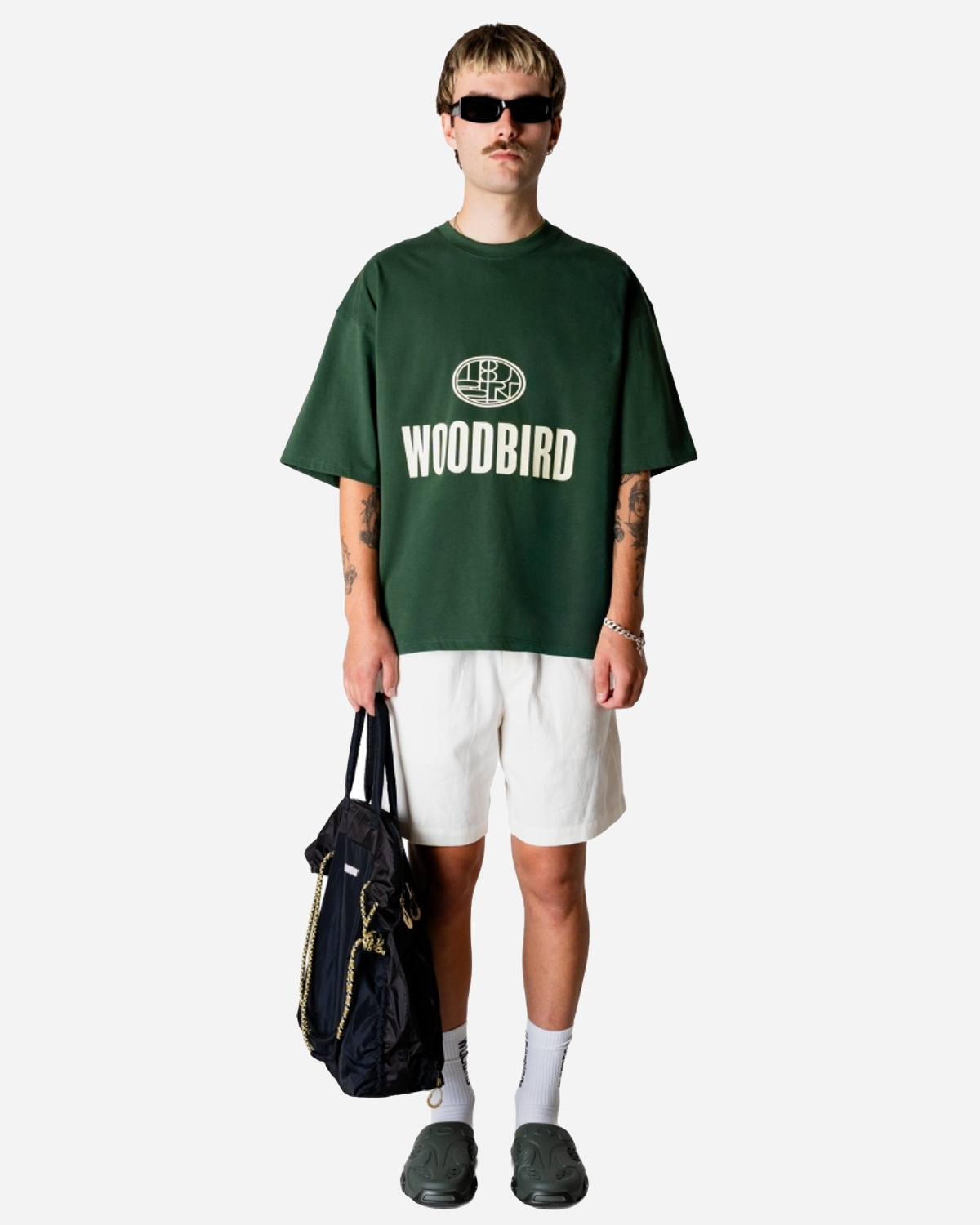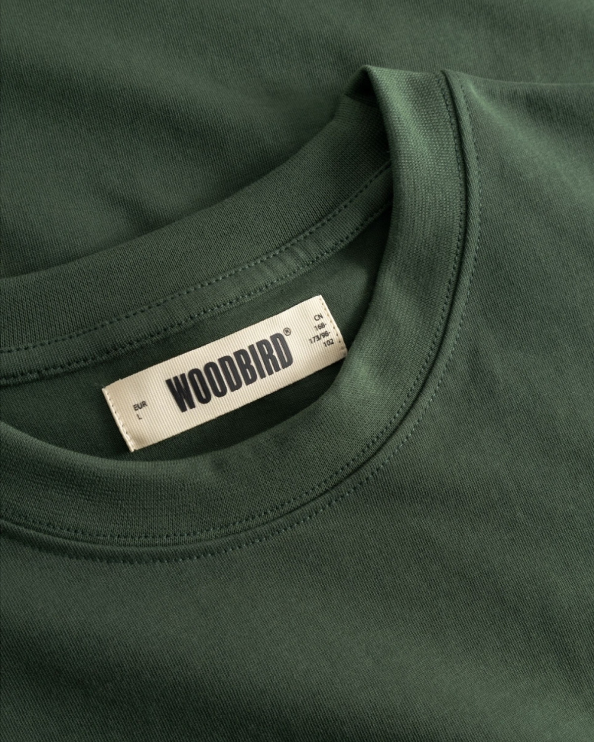 Woodbird WBBaine Base Tee - Forrest Green er din nye go-to hverdags T-Shirt. Klassisk crew neck, korte ærmer og en lige kant forneden giver et roligt, rent look. Den lille logodetalje på brystet er diskret og holder designet enkelt.