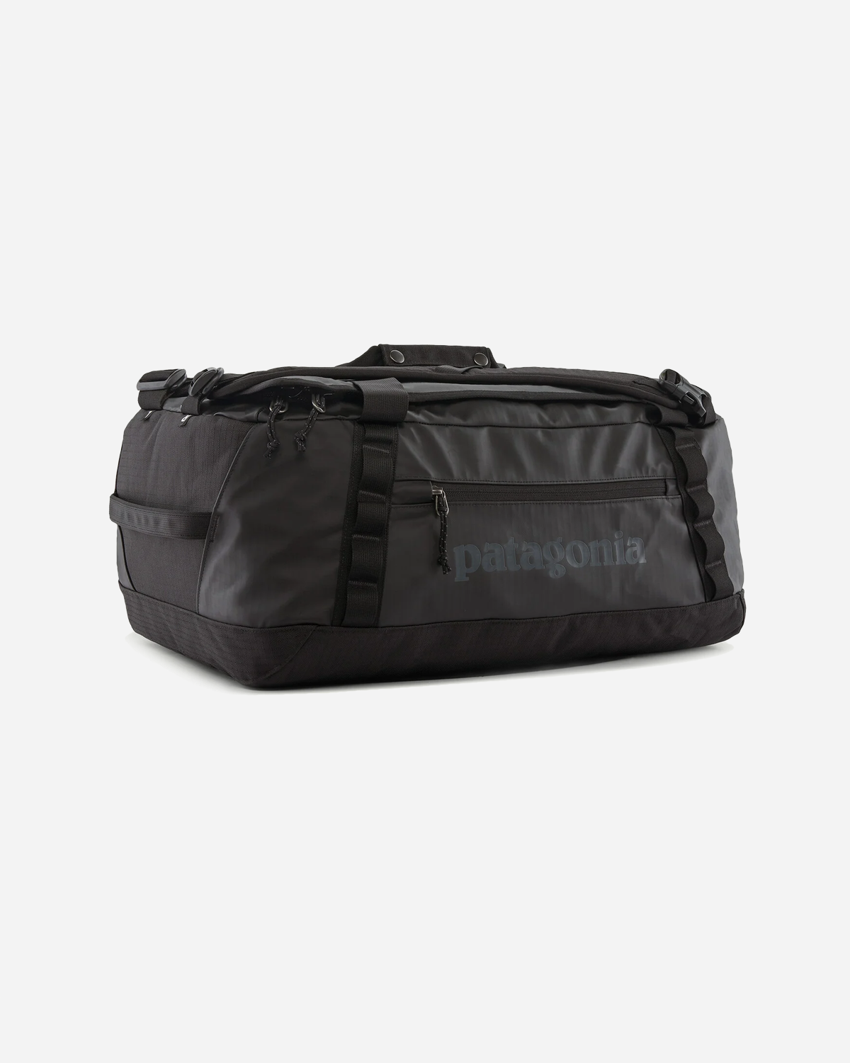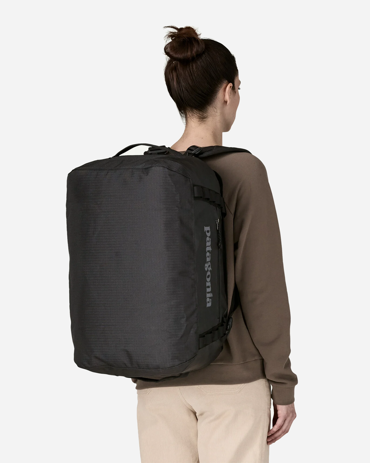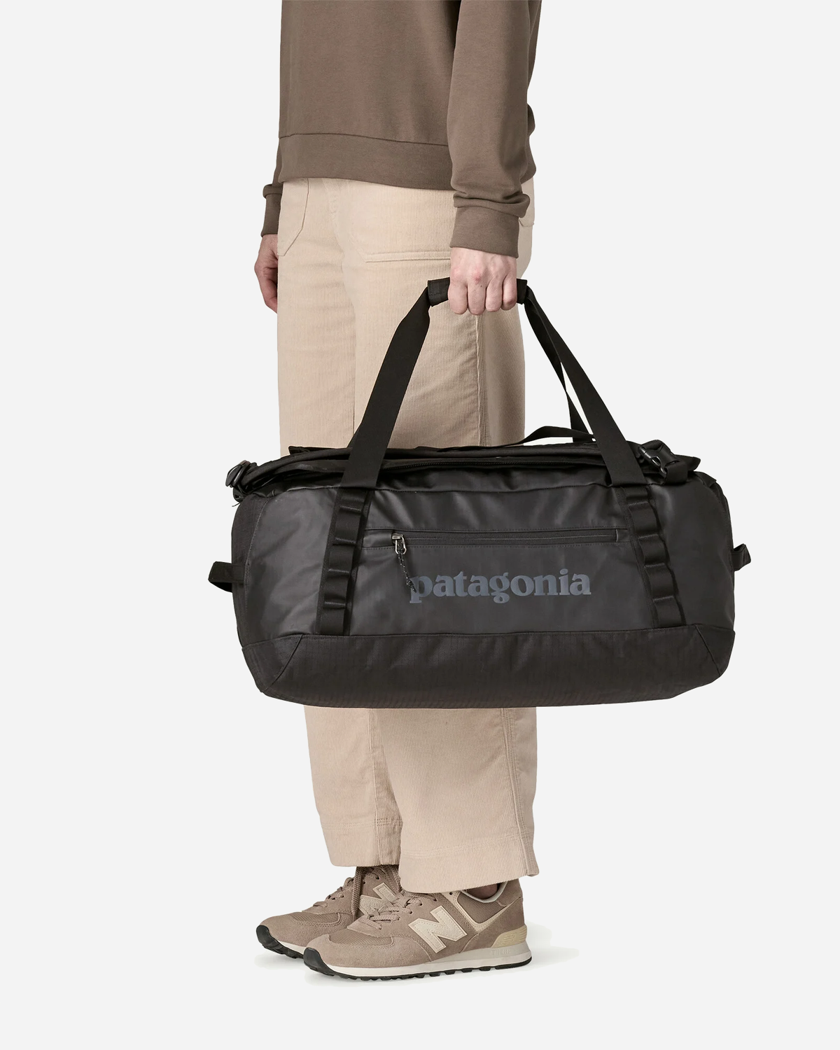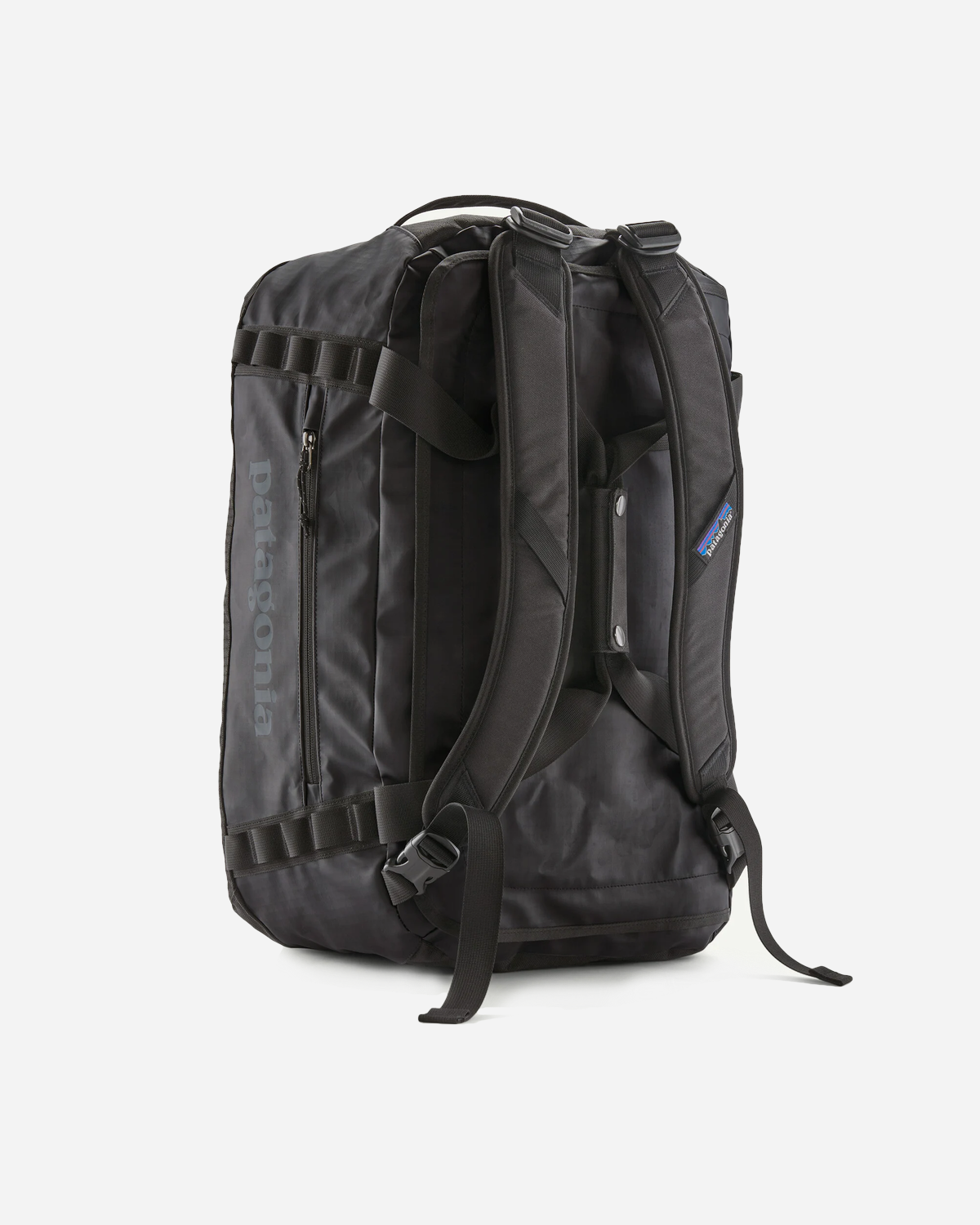 Patagonia Black Hole Duffel 40L - Black w/Black er din solide rejsemakker til weekendture, sport og små outdoor-planer. I Tasker & Punge-kategorien er den 40 liters model den kompakte løsning, der holder til lidt af hvert og tager det roligt, når vejret skifter. Den er syet i genanvendt ripstop polyester med TPU-laminat og bluesign-godkendte materialer, så dit grej er godt beskyttet i regn og rusk.