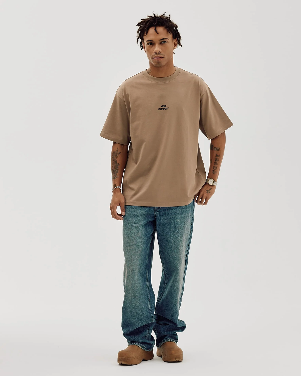 Bareen Box fit T-shirt Logo 2.0 - Mocha leverer et afslappet, moderne look med boxy, oversized pasform og sænkede skuldre. En T-Shirt fra Bareen der sidder løst på den gode måde og er behagelig at have på hele dagen.