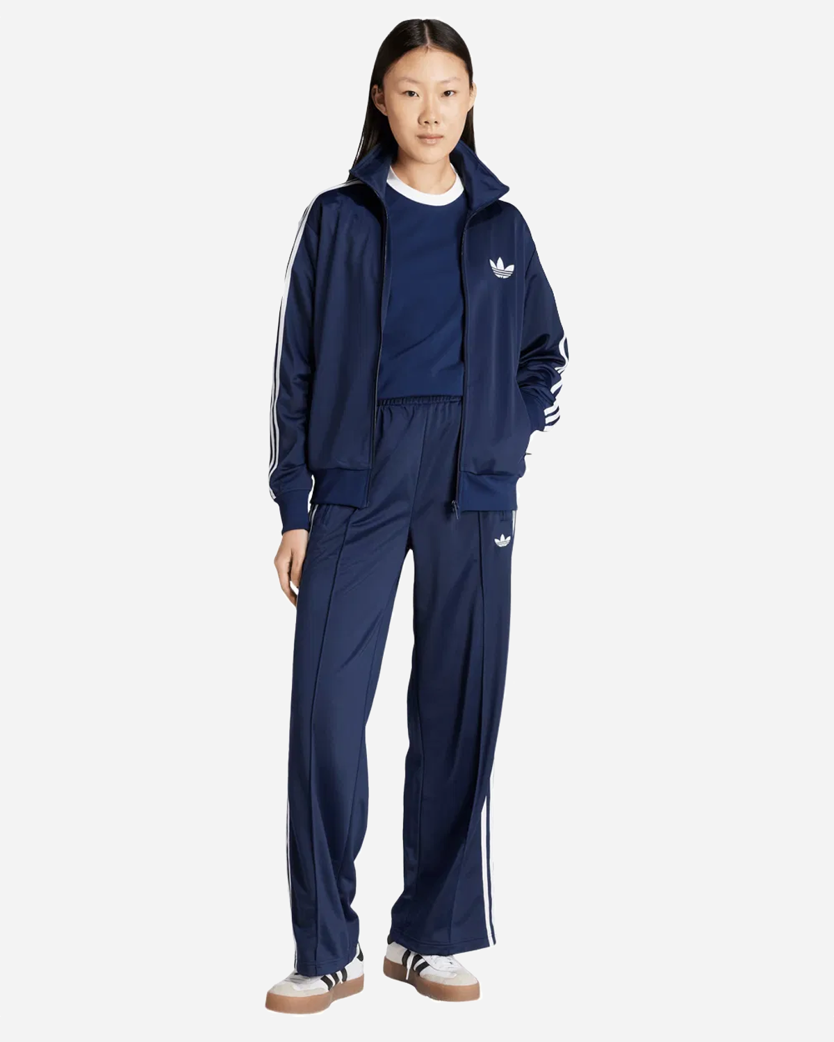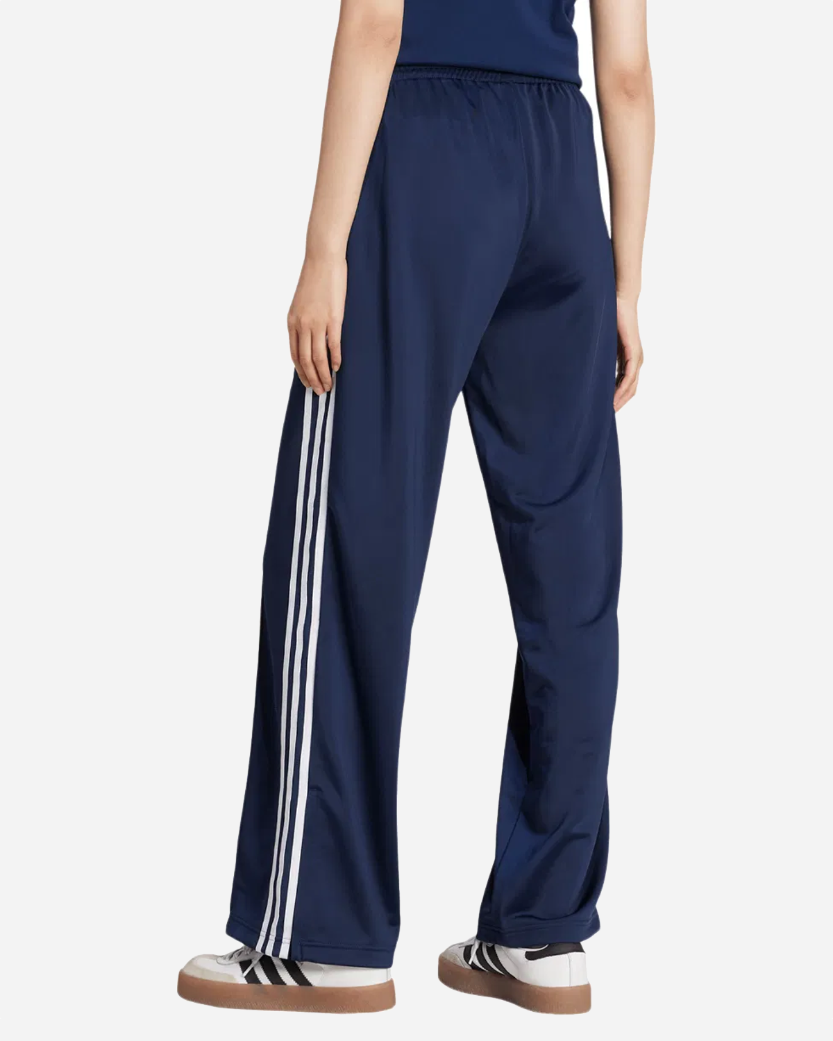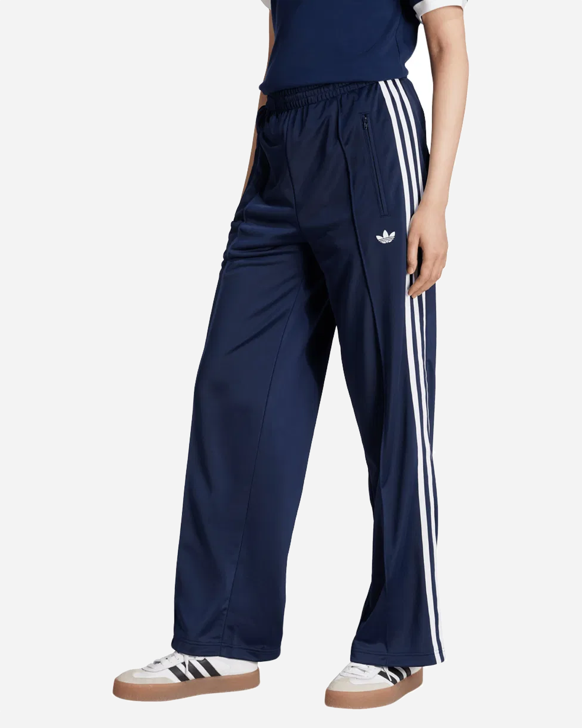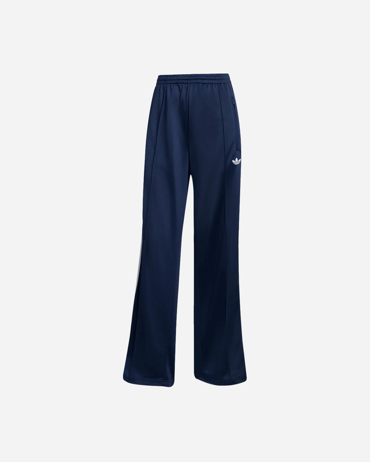 Adidas Fb Loose TP - Night Indigo/White bygger på den klassiske Firebird og er lavet til ren hverdagskomfort. Den løse, brede benform og mellemhøje talje giver et nutidigt look og masser af bevægelse. Elastisk talje med snøre gør pasformen nem at justere, og lynlåslommer holder småting sikkert. De velkendte 3-Stripes langs siden og et broderet Trefoil på venstre lår giver den genkendelige Adidas vibe.
