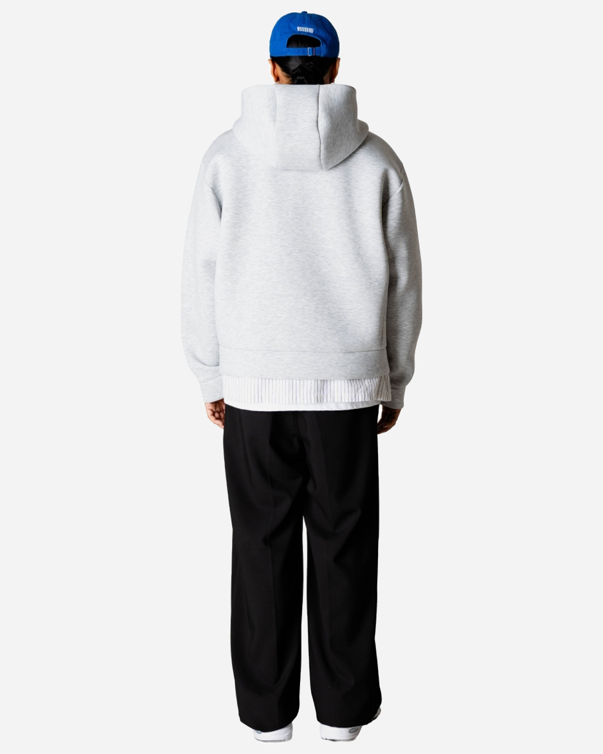 Metervaren er glat og let struktureret i 95% polyester og 5% elastan. Den føles blød, holder formen og kræver minimal vedligeholdelse. Light Grey Melange spiller godt med både jeans, chinos og track pants. Vaskes skånsomt. En zip hoodie du hurtigt griber efter igen og igen.