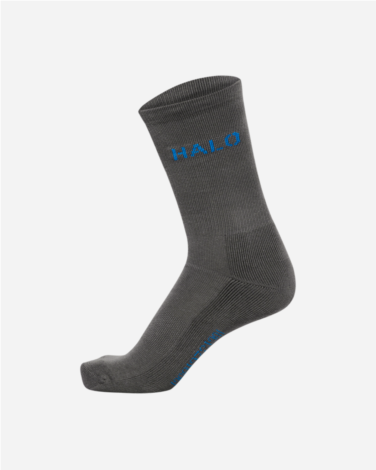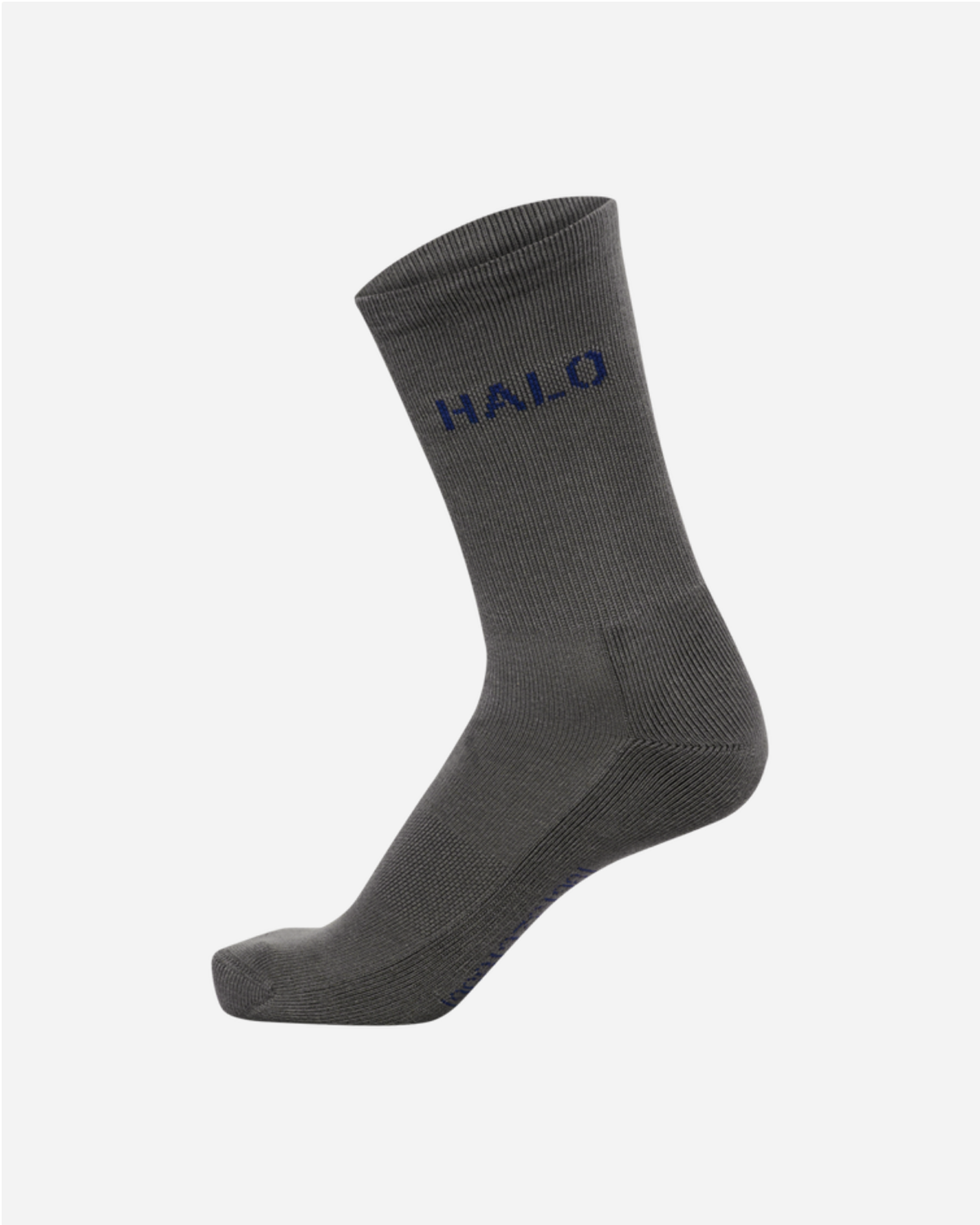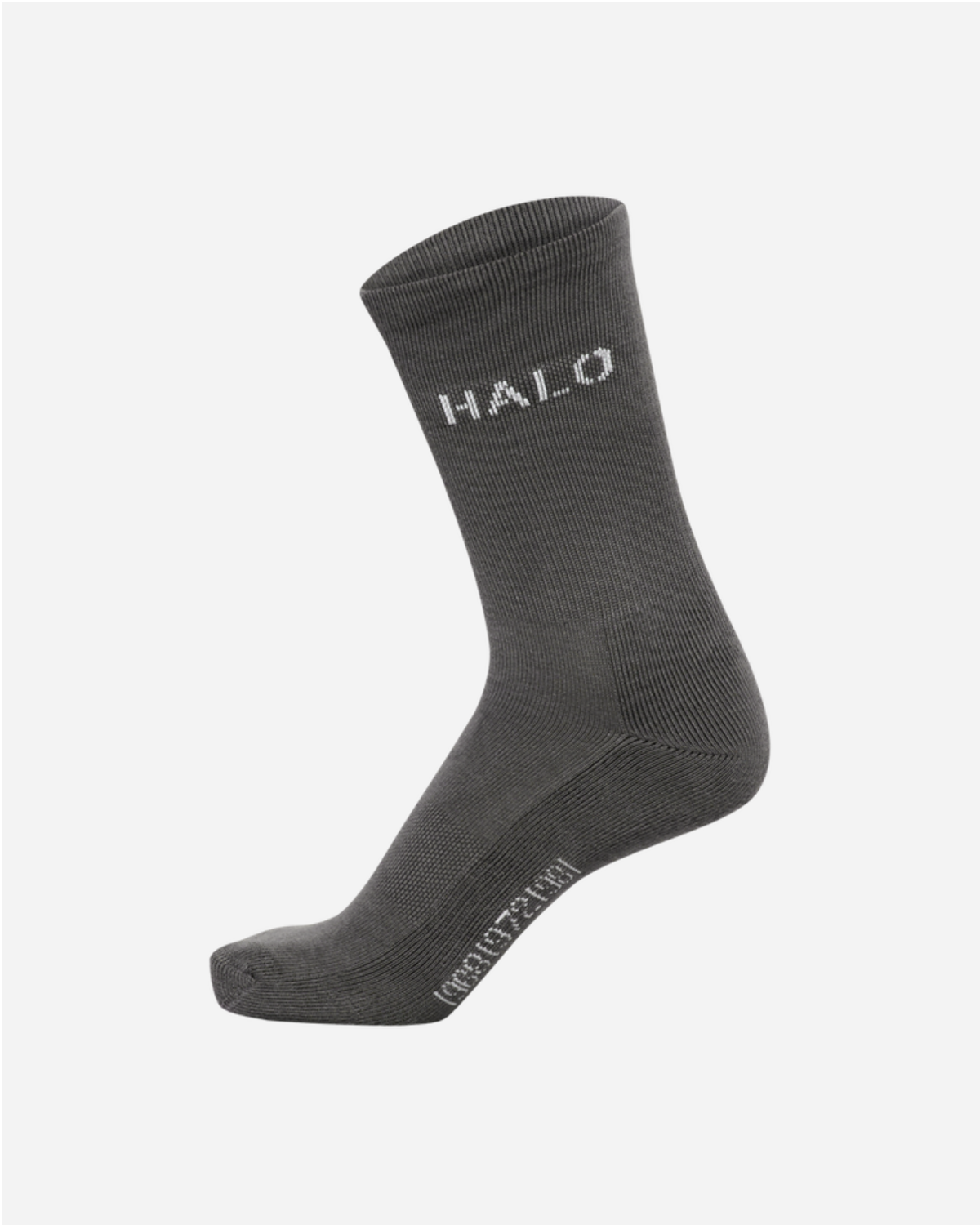 Halo Cotton Logo Socks - Gunmetal er sokker i en blød bomuldsblanding med det velkendte Halo logo. Et enkelt, hverdagsklart valg, hvis du vil have Halo med i dine sokker hver dag. Sokkerne er på lager hos Munk Store og klar til afsendelse, og der er flere Halo sokker på vej.