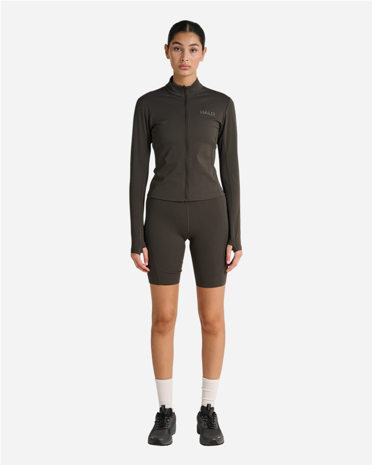 Et godt eksempel er Halo Women Full Zip 2.0 - Raven. En let trøje med fuld lynlås og en ren silhuet, som fungerer lige godt åben over en T-shirt eller lukket som en let jakke. Raven er en mørk, rolig farve, der passer ind med jeans, track pants og tights.