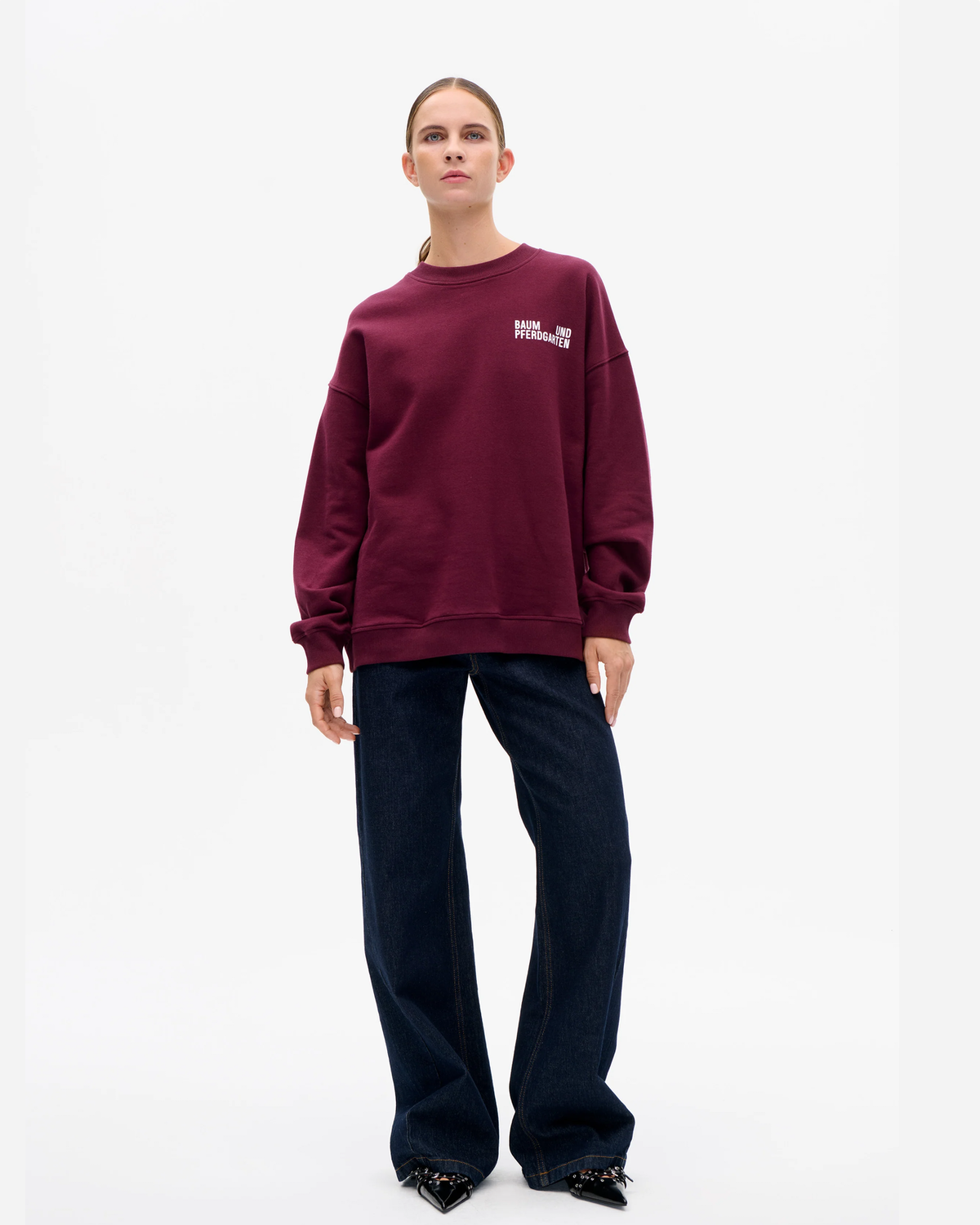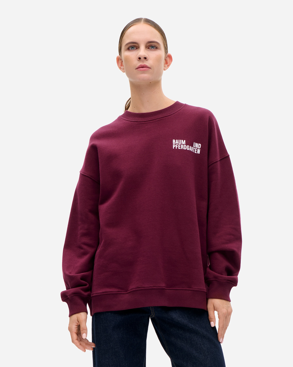 Julle Top - Port Royale fra Baum Und Pferdgarten lander lige der, hvor Sweatshirts & Strik skal være i hverdagen. Den er lavet i blød økologisk bomuld, har en oversize pasform med droppede skuldre og en klassisk rund hals. Farven Port Royale er en dyb bordeaux, der giver et roligt, rent look.