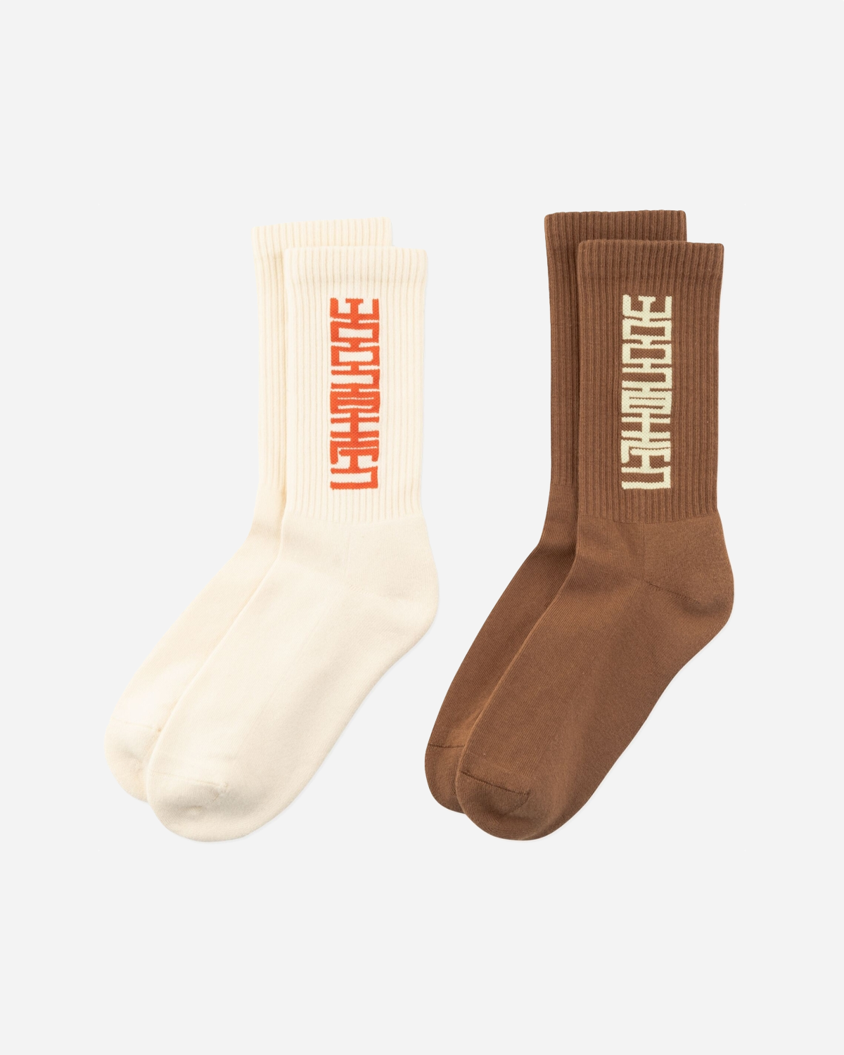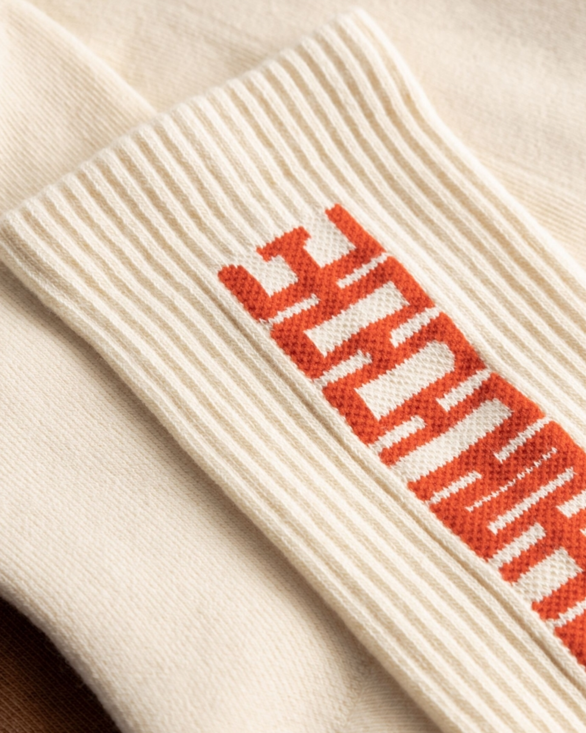 Hvis du går efter en mere dæmpet farvekombi, er WBTennis Logo Socks 2 pack - Butter fra Woodbird et stærkt alternativ. Samme gode pasform med rib og tydeligt vertikalt logo samt branding på foden, men i varme nuancer, der spiller fint sammen med alt fra denim til chinos.