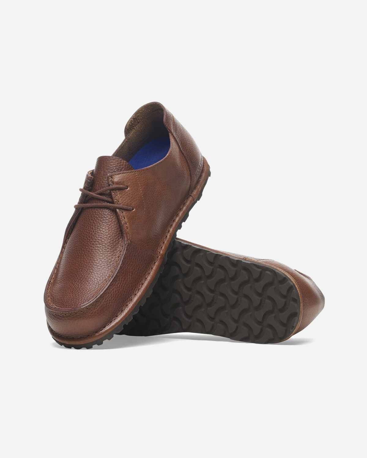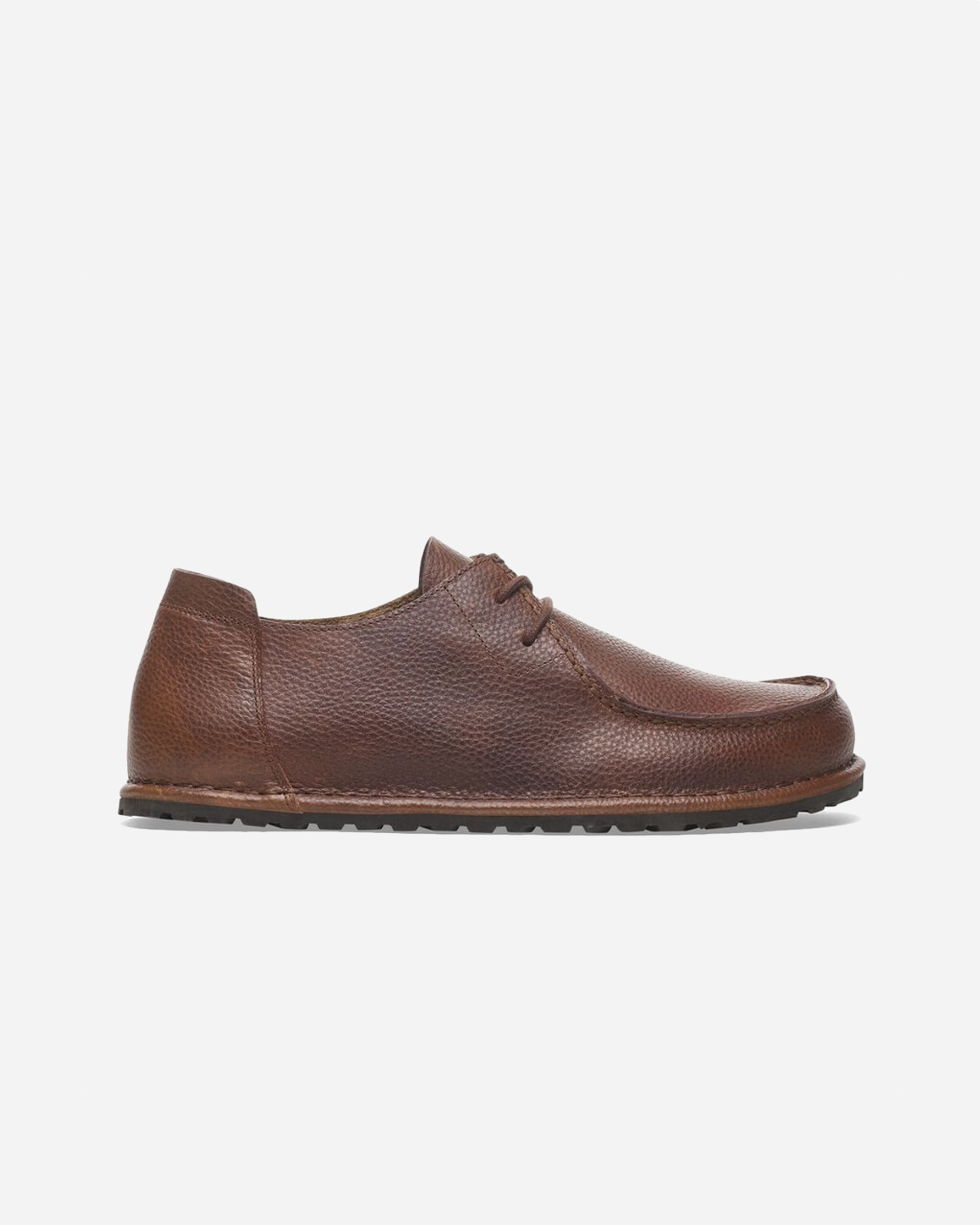 Birkenstock Utti Lace i farven Roast rammer den rolige balance mellem den traditionelle moccasin sko og almindelige hverdagssko. Overdelen er lavet i naturligt læder, hvor de markante syninger gør den genkendelig. Snørebåndende er små og enkle, og den bløde hælkappe gør også skoen behagelig at have på.